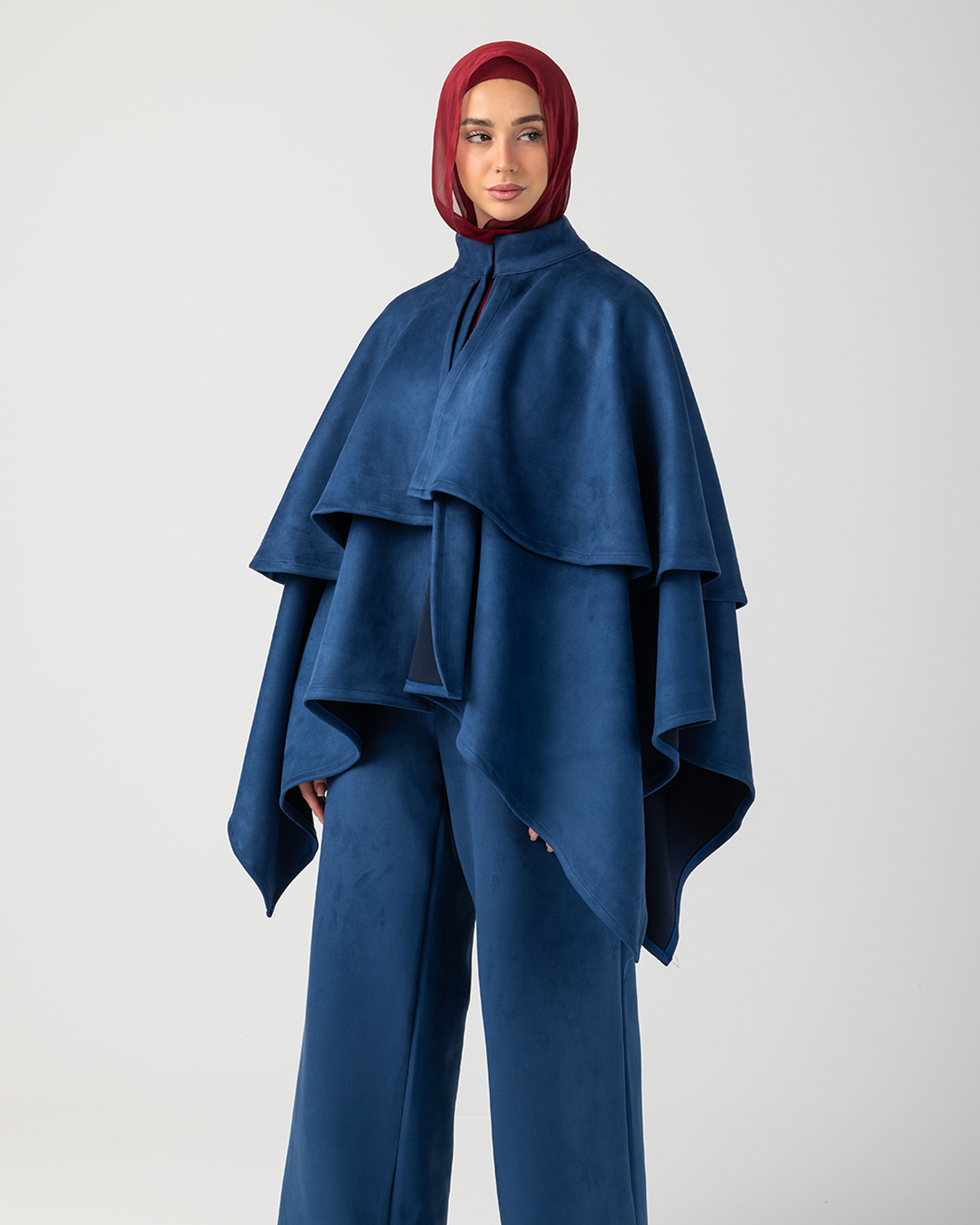 Featuring the same iconic layered cape design and wide-leg pants as Petra Soft, this edition offers a more structured drape and enhanced warmth, making it ideal for colder days and elevated winter looks. The layered cape holds its form beautifully, while the wide-leg pants—with functional pockets—create a powerful yet effortless silhouette.